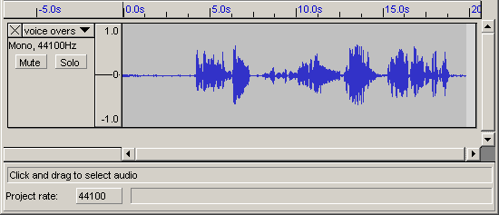 The imported file should now be displayed in an audio track. The bottom part of Audacity should look a little like this :