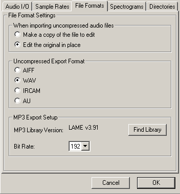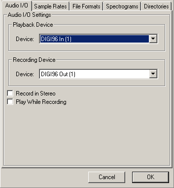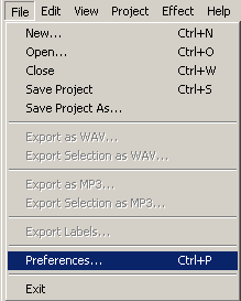 We'll ignore the Spectrogram settings for now. The Directories setting can be ignored as well for now, because all it sets is the directory to use for recordings, undo data and other stuff, if you haven't yet saved your project. Since we already saved our project, this setting is of no importance to us, though you may want to set it properly later on. Initially this is set to a folder called ".audacity_temp" in whatever directory you were in when Audacity started.