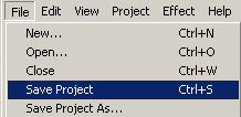 To save your project later on, you can also use the keyboard shortcut : CTRL+S