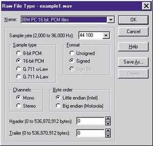 помощью Sound Forge как RAW-файл (в качестве WAVE-файла программа