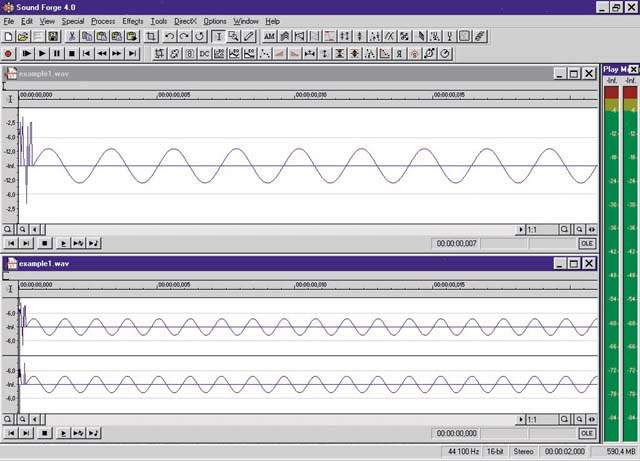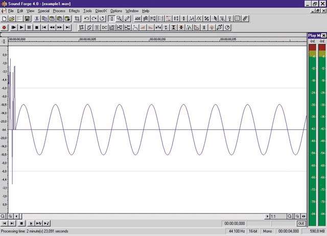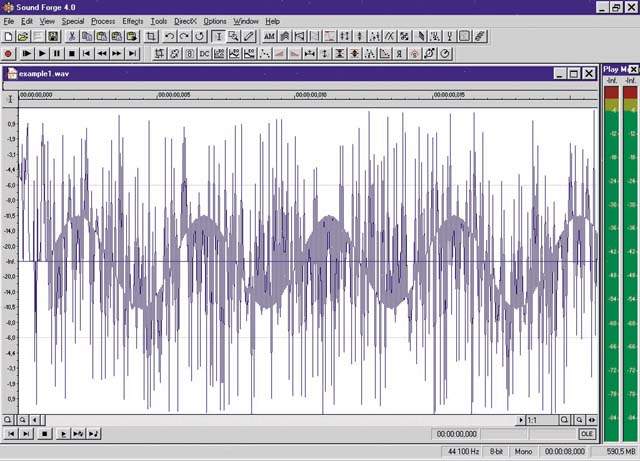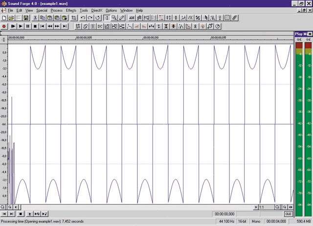 Возьмем тот же example1.wav (16 разрядов, 44100 Гц, моно) с записью