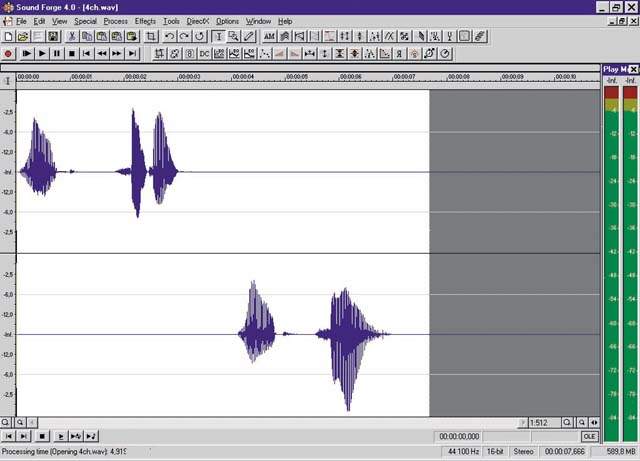 Берем четырехканальный WAVE-файл под названием 4ch.wav. Звуковая